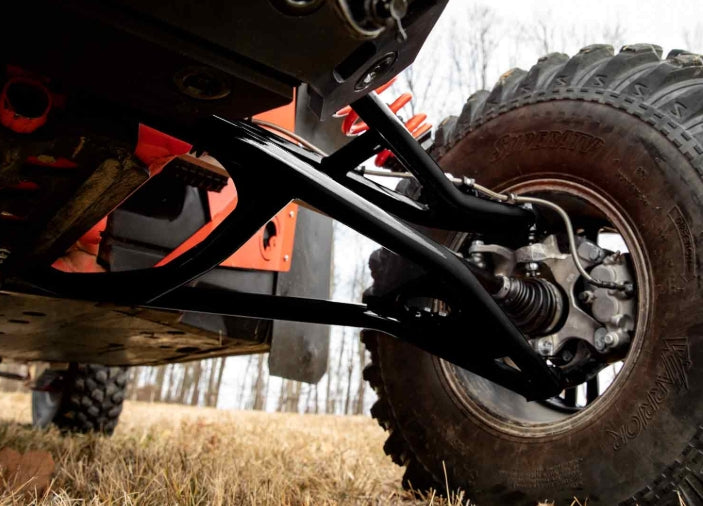 The X3 is a hardcore machine straight from the factory. So what’s better than a dealer-fresh X3? One with monster tires! Transform your UTV from trail pup to top dog with SuperATV’s Can-Am Maverick X3 High-Clearance 2" Forward Offset A-Arms. These A-arms add 1.5” of ground clearance to boost your rig over logs and rocks. Plus, they give you space for bigger tires. They bring strength, style, and quality to make your Maverick unstoppable.