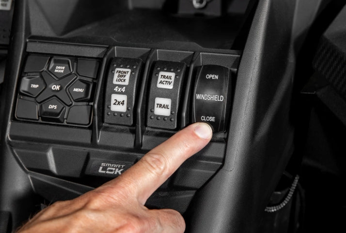 When you’re about to get pelted in the face by your buddy’s rooster tail, nothing beats SuperATV’s Powered Flip Windshield. It uses powerful electric cylinders so you can open and close it with the push of a button. Make on-the-fly adjustments to set it fully open, fully closed, or to limitless positions in between—even at full speed. You’re in total control of your airflow, visibility, and protection. It takes zero effort to maximize your comfort.